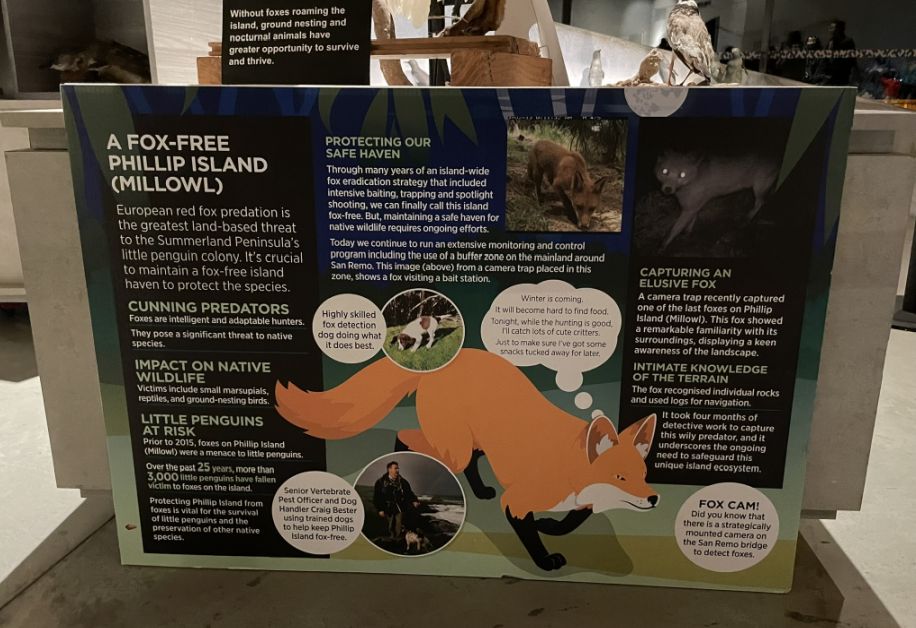 European red foxes were introduced to Phillip Island in the early 1900s, originally for recreational hunting. Over time the foxes preyed heavily on native wildlife. In particular, little penguin (also called fairy penguin) colonies were decimated. By the 1980s, nine of Phillip Island’s ten penguin colonies had become extinct. The last remaining colony on the Summerland Peninsula (where the Penguin Parade is) was under serious threat.