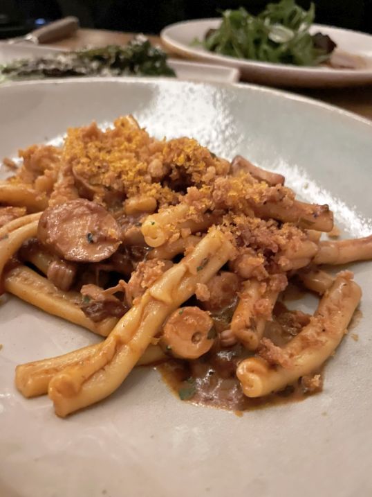 Casarecce polpo all'Inferno-Tomato, chilli braised octopus, bottarga.