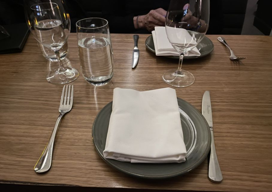 Our table was next to a wooden wall separator topped with wine bottles which is a great way to add both visual interest and a sense of Italian cellar charm.
