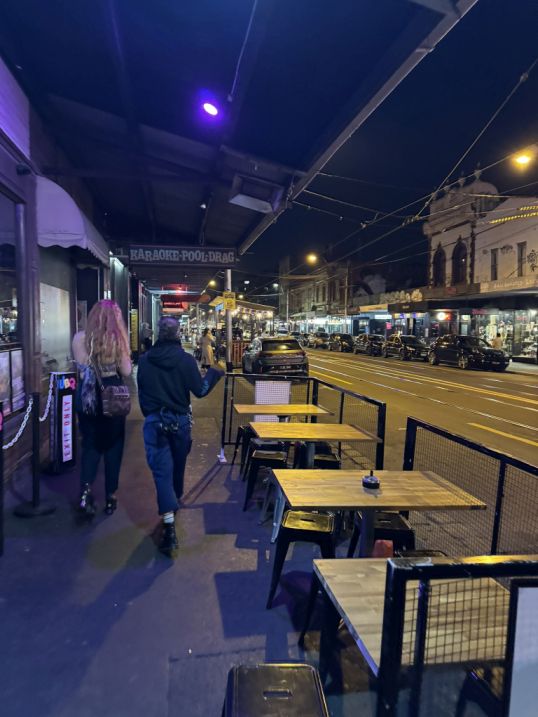 The Grace Darling Hotel, a landmark on Smith Street and one of Melbourne’s oldest pubs. The grey and white stone exterior with its corner position gives it a distinctive look, standing out among the more modern and graffiti-covered surroundings. Built in the mid-1800s, it has a rich history tied to the city’s early days, and today it’s known as a lively spot for food, drinks, and live music. Its heritage façade adds character to Fitzroy, blending old-world charm with the neighborhood’s creative edge.