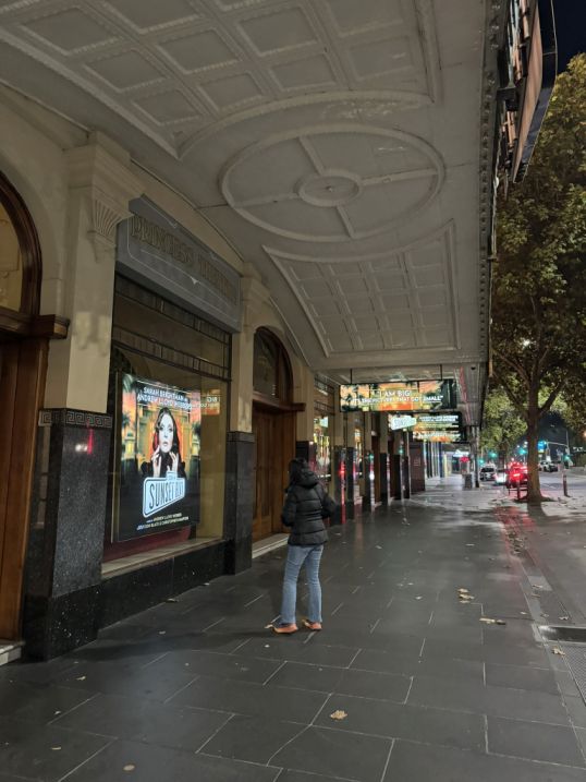 The huge sign announcing Sunset Boulevard starring Sarah Brightman made it feel especially vibrant. The bold display lit up the street, drawing attention to the theater’s role as one of Melbourne’s premier stages.