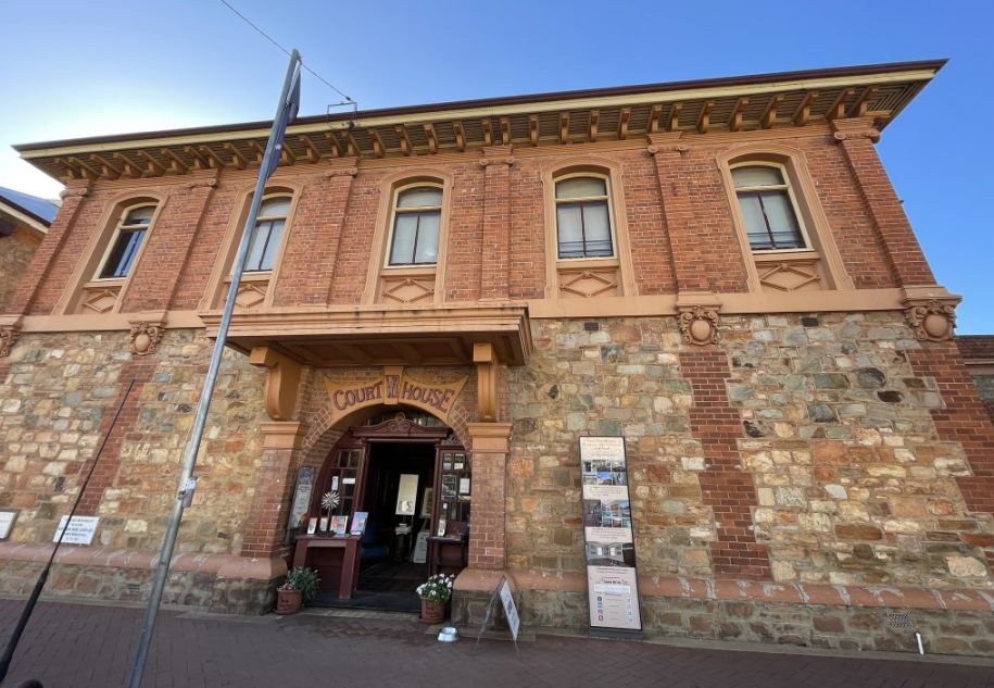 York Courthouse Complex (Court House, Police Station & Gaol). his complex spans a long period: first structures (cell block and police quarters) date back to 1852, with later additions through to 1896. The design was done by George Temple-Poole, again, he was very active in public architecture in WA. The complex include a gaol (jail)/cell block for convict laborer and other, a courthouse, a Police quarters, stables, a troopers’ cottage, and an exercise yard. Today, the complex has been repurposed as a museum and art gallery under the National Trust.