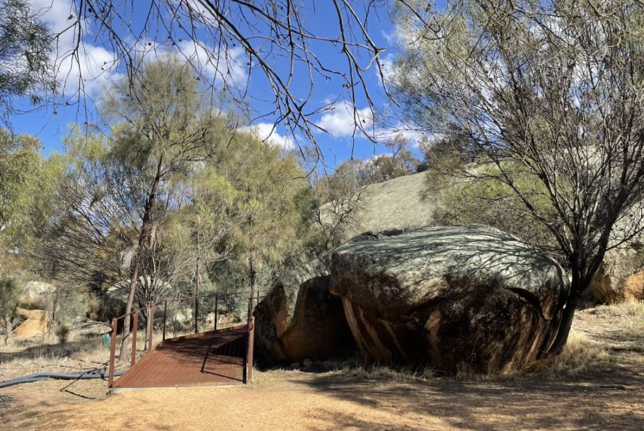 According to Noongar tradition, the cave is named after Mulka, the son of a woman who broke a sacred law by having a forbidden relationship. Because of this, Mulka was born with a deformity: his eyes were set so low on his face that he could not look forward, only downward. Even as a child, he grew unnaturally tall and powerful. Mulka was raised with love, but he struggled to fit into the laws and values of his people. As he grew older, he became unpredictable, restless, and finally violent. He began to attack travellers, then eventually turned to harming children in nearby camps. When his mother confronted him, Mulka reacted in rage and killed her. After the murder, Mulka fled into the bush, living in the granite landscape around what is now Hyden. The people of the region banded together and pursued him. Eventually, they caught him and punished him for breaking their most sacred laws. Mulka’s Cave is said to be one of the places he used as a shelter. The handprints on the cave ceiling are part of this story, they are believed to be the prints of people who once lived here, watching over the cave and preserving its memory.