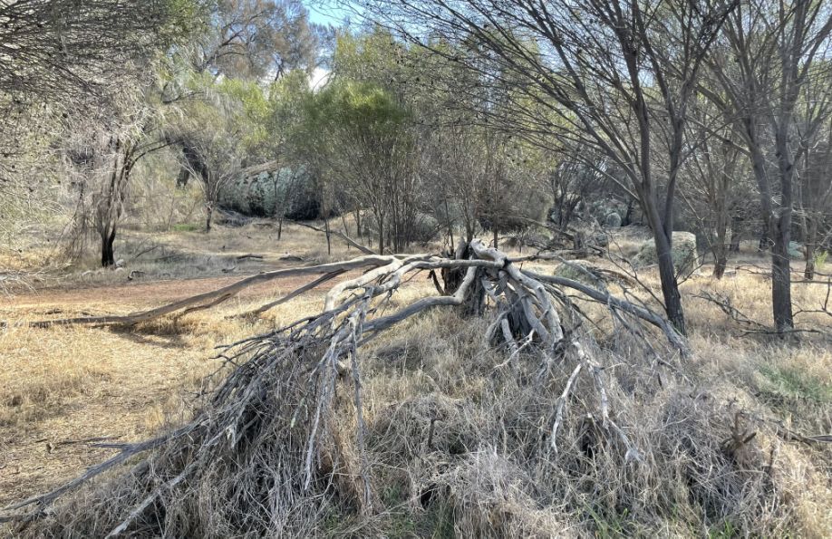 During these dry cycles, Mallee eucalypts naturally shed branches to conserve energy. So the dead branches you’re seeing are part of their survival strategy, the tree drops what it can’t afford to keep alive.