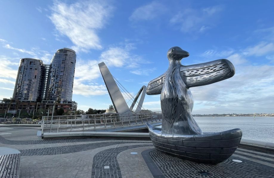 From here you can see the two big arches of the Elizabeth Quay Bridge.