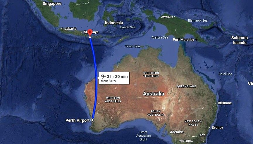 We flew from Perth to Bali.