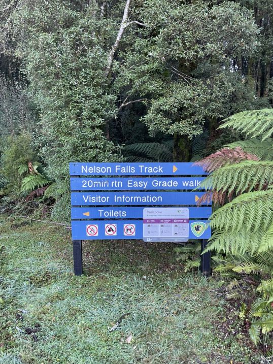 We are now starting Nelson Falls Track, a short and scenic walk that is about .8 mile that winds through the lush temperate rainforest of the Franklin–Gordon Wild Rivers National Park.