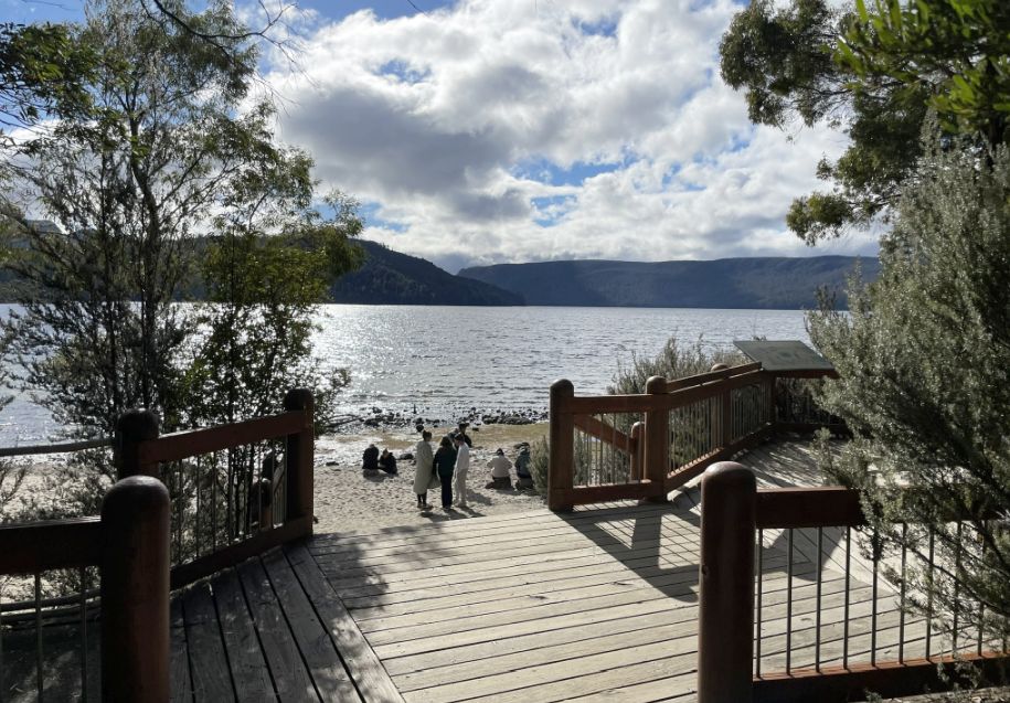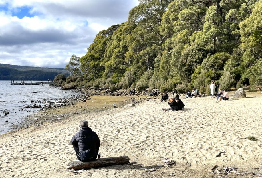 Afterward Russell Falls, Tom, our tour guide drove about 2 hours to reach Lake St. Clair, a place of serene beauty and deep wilderness. Known as Australia’s deepest natural freshwater lake, it was carved by glaciers during the last Ice Age and sits surrounded by rugged mountains and dense forest. The water is calm and crystal clear, reflecting the sky and distant peaks like a mirror. The area feels incredibly peaceful, with only the sound of wind through the trees and the occasional call of birds echoing across the lake. It’s easy to see why Lake St. Clair is considered one of Tasmania’s most tranquil and awe-inspiring natural landscapes.