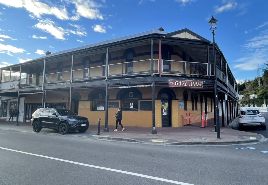 Its prominent two-story facade is a major feature of the town's streetscape, and the hotel remains a landmark today. It stands across from where the historic Queenstown railway station was located.