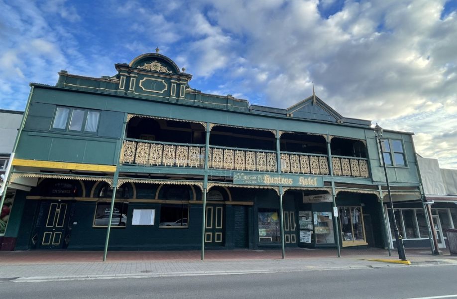 Hunters Hotel had been closed for about 20 years and fell into disrepair. In 2016 it was sold for about $175,000 AUD, with plans to invest further to restore it as a bed & breakfast while preserving its heritage façade, period features, and the iron-lace balcony. By the 2020s, the restoration was well underway. The owners, Ralph & Renate Wildenauer, have been working to bring it back to life, retaining historic features like the original bar area, antique elements, and period decoration, while upgrading rooms and facilities to modern standards. It now operates principally as a bed & breakfast with quietly furnished rooms that retain historic charm (period details, heritage décor) alongside modern amenities.