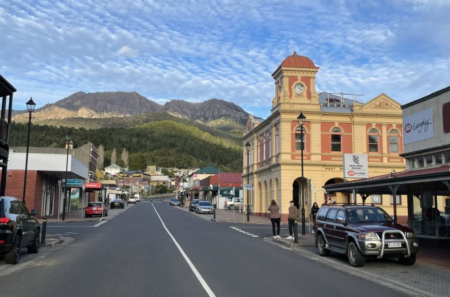Orr street is the main commercial street in Queenstown. The town is pretty quiet with a population 1,772 people as of the 2021 Australian census.