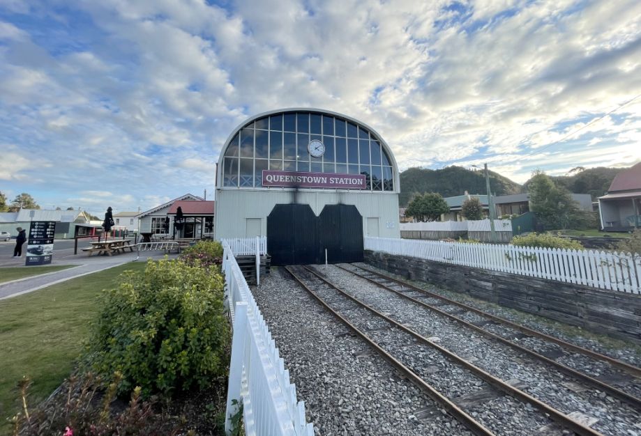 Queenstown Railway Station view from Driffield street. Originally built in 1896 by the Mount Lyell Mining & Railway Company to transport copper from Queenstown to the port of Strahan. By 1963 due to increasing maintenance costs and the improvement of road access to the West Coast, the railway line closed, and the original Queenstown Station ceased operations. The track was largely removed and the line fell into disrepair over the following decades.