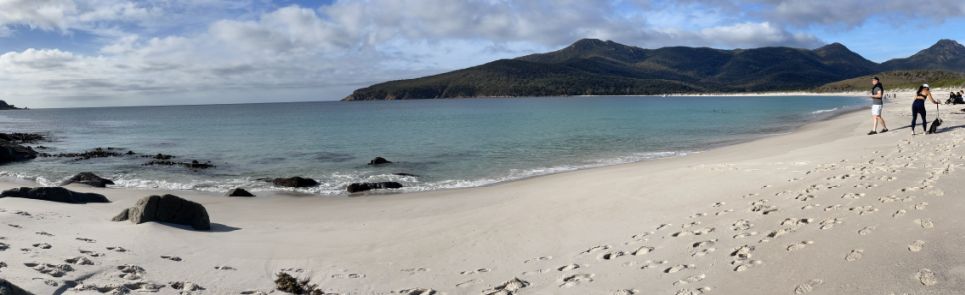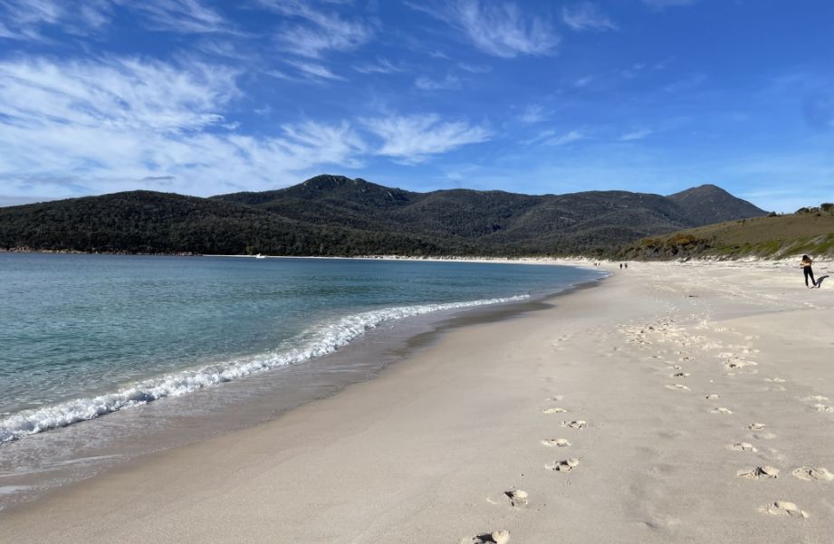 As we finally stepped onto the soft, white sand of Wineglass Bay, the view opened up in all its beauty.