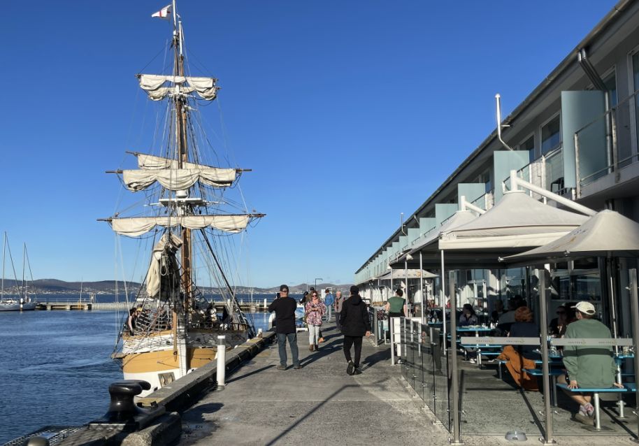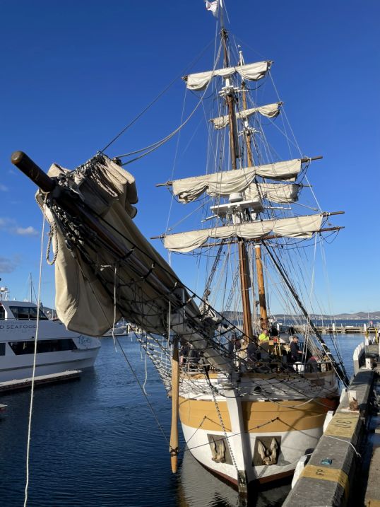 The vessel is a full-scale replica of the original 18th-century ship that once explored Australia’s southern coast, and it serves as both a training ship and a symbol of Hobart’s deep maritime history. Seeing it here among the modern yachts and fishing boats feels like stepping briefly back in time.