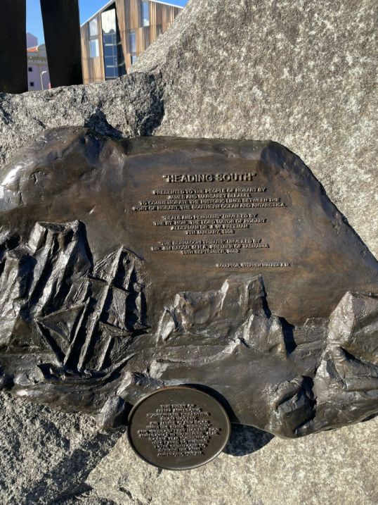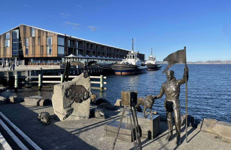This is the Bernacchi Tribute, a monument dedicated to Louis Bernacchi, one of Tasmania’s most famous Antarctic explorers. He was the first Australian to winter on the Antarctic continent, and the statue celebrates both his courage and Hobart’s long-standing link to polar exploration. The seals and penguins at the base represent the wildlife of the Southern Ocean, a reminder of the wild, icy world that begins just beyond Tasmania’s southern horizon.