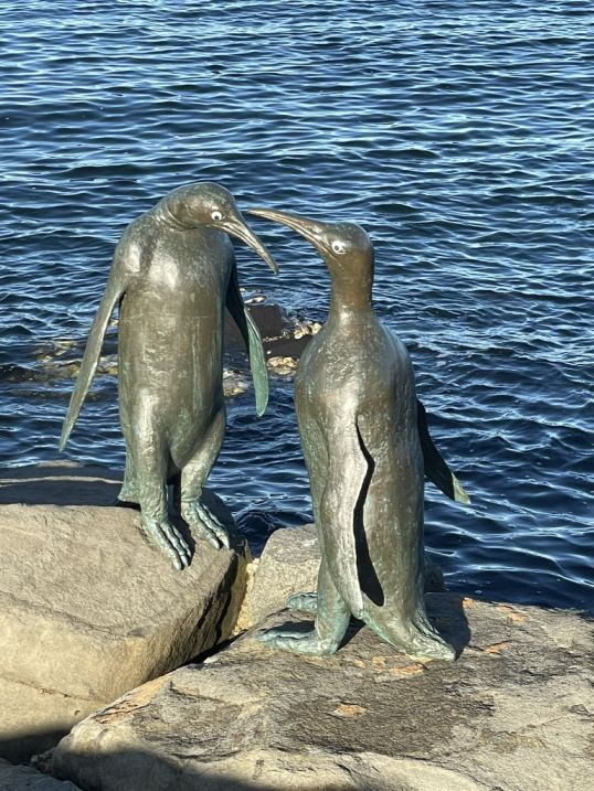 Bronze sculptures of seals and penguins are part of the Bernacchi Tribute as well, and they really bring a playful, lifelike touch to the waterfront scene.