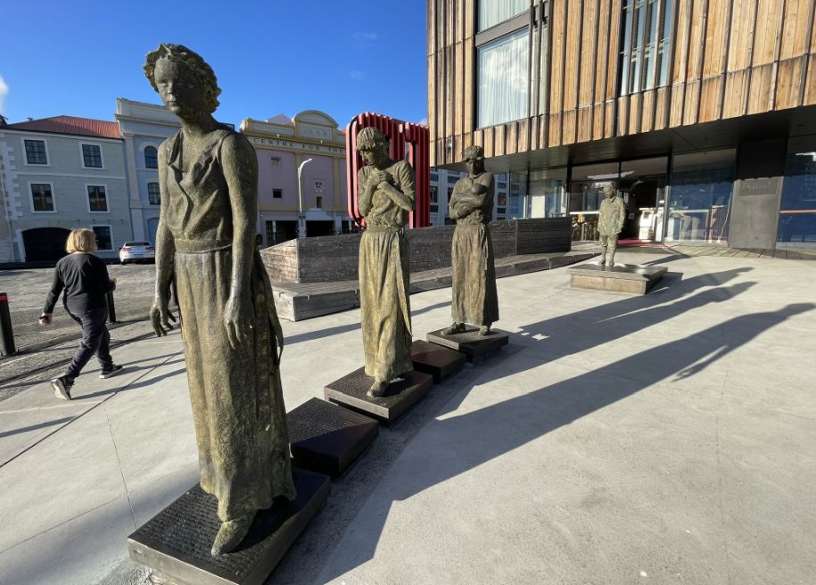 These figures depict scenes from Hobart’s early colonial days with men, women, and even children who arrived in Tasmania as convicts in the 19th century.