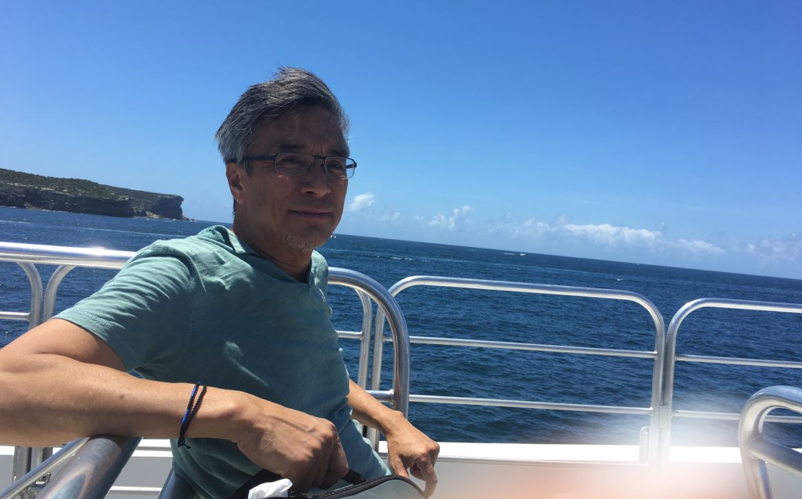 Enjoying the sun while seating on the upper deck of the ferry.