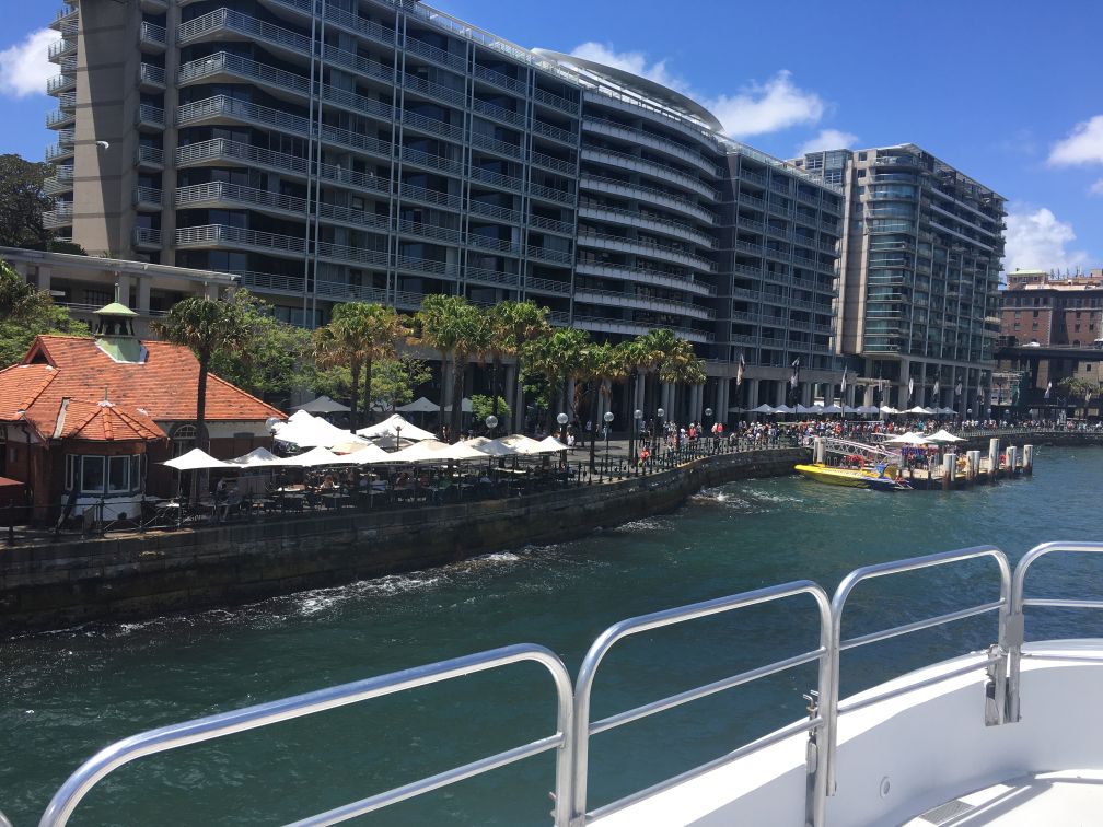 We are now taking the ferry back to Circular Quay.