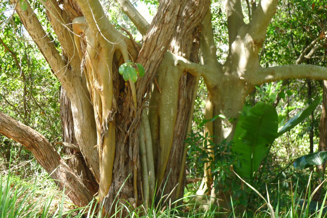 Interesting tree trunk. Looks like a bunch of trees were planted too close and as they grey they fused together.
