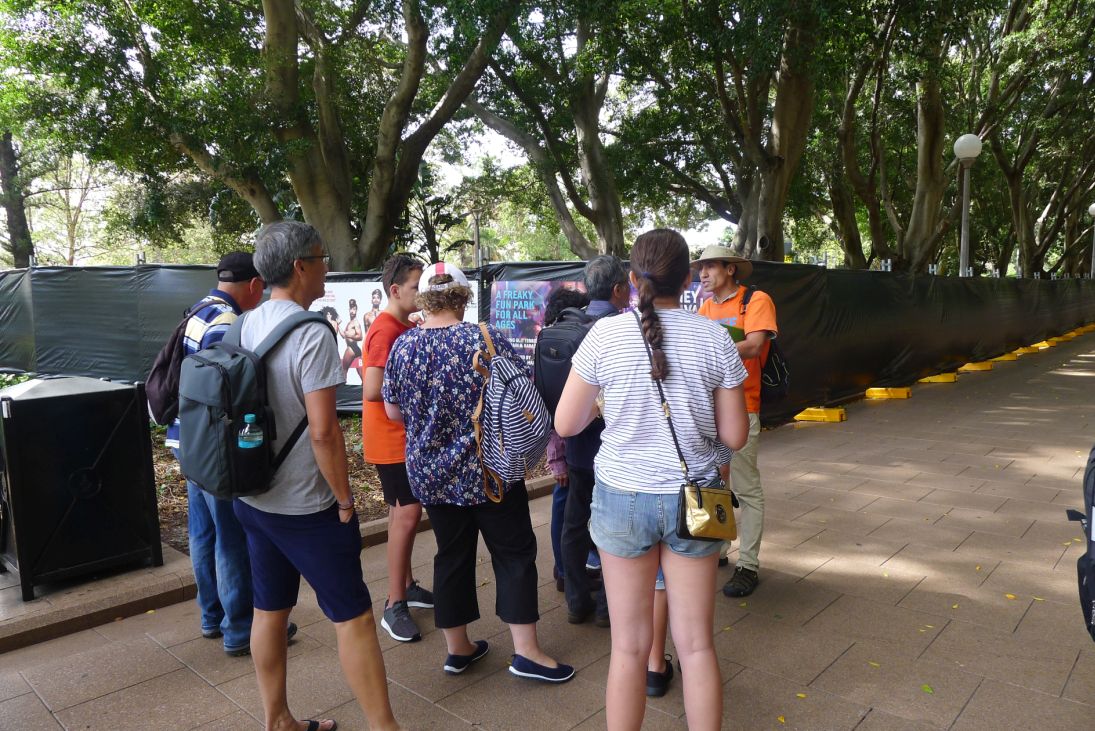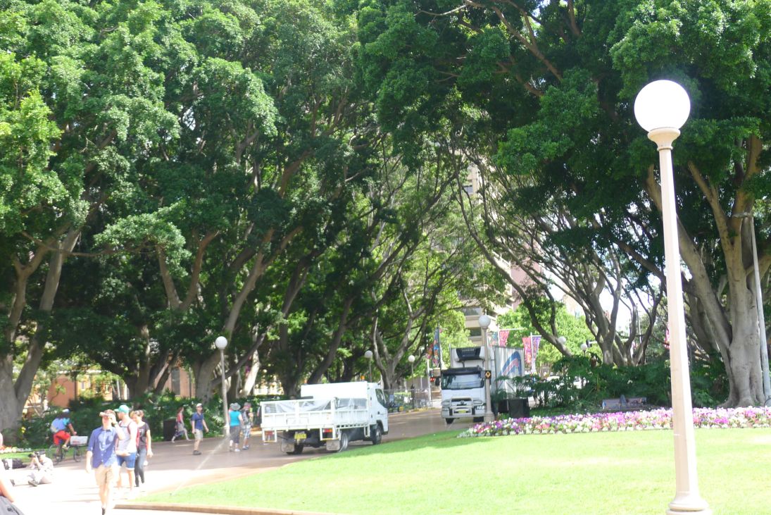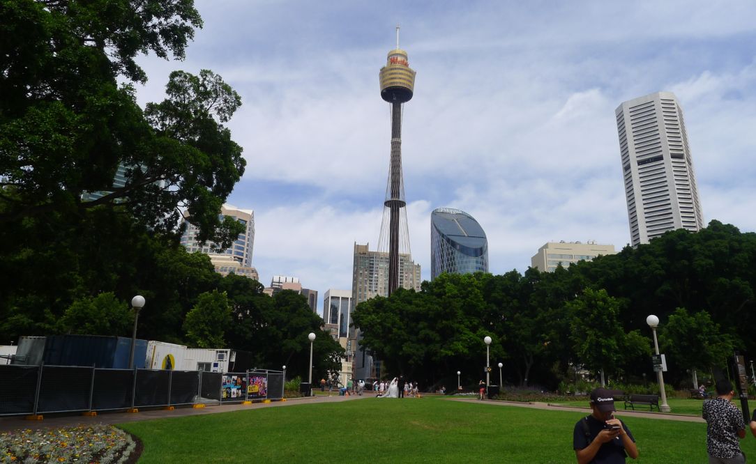 Sydney tower view from the park. There is also a wedding in progress at this time (look at your will see a bride and her wedding dress).