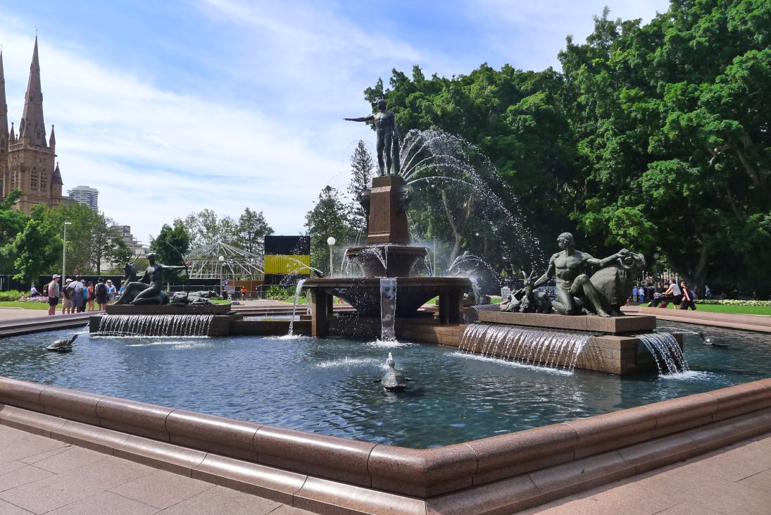 In the center is the iconic Archibald Fountain named after J. F. Archibald, owner and editor of The Bulletin magazine, who bequeathed funds to have it built.