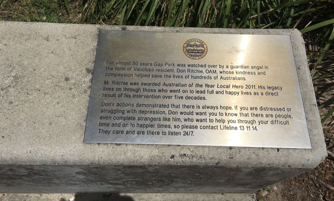 The Don Richie Grove was established in memory of Don Ritchie who officially rescued 160 people from suicide at the Gap.