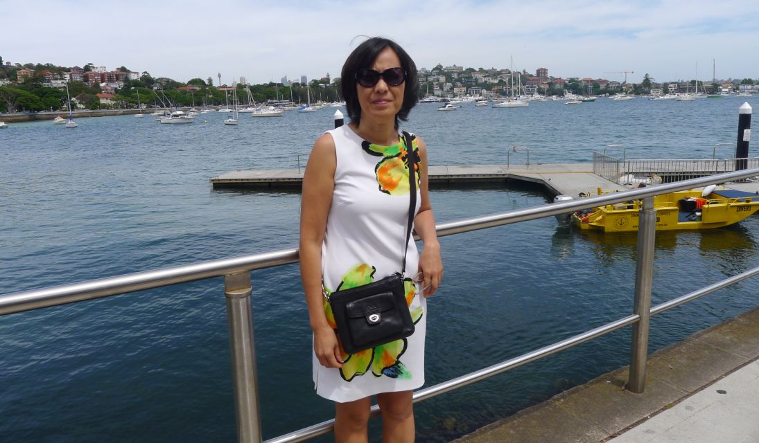 The picture is blurry but from Rose Bay Warf you can see the Harbor Bridge in the distance (far right).