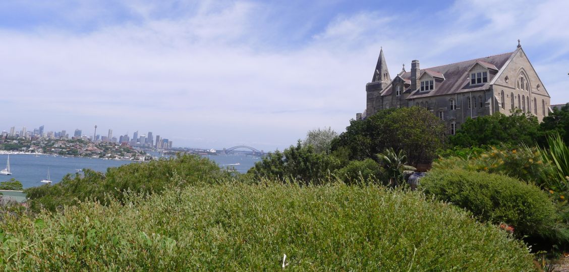 Huge mansion up the hill and in the background you can definitely see the Harbor bridge, the Opera house, and the Sydney Tower.