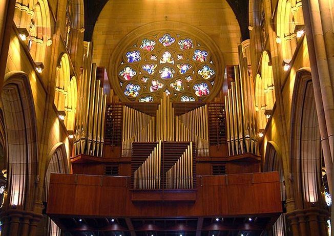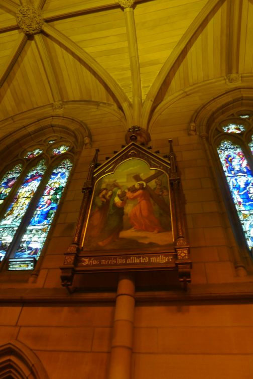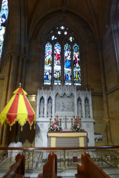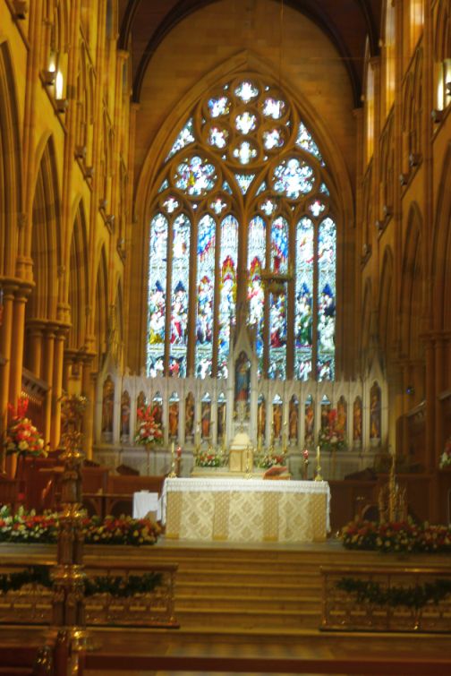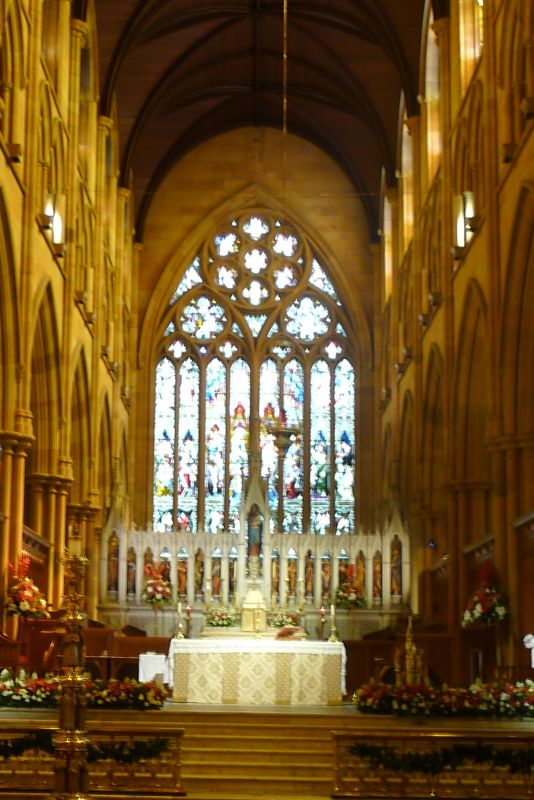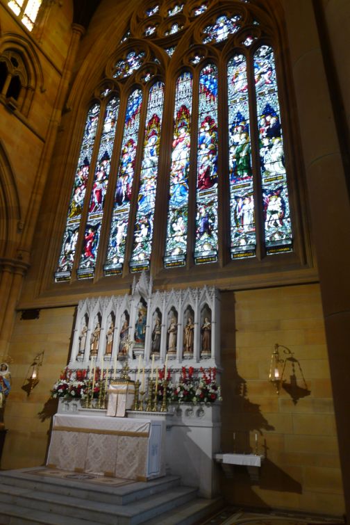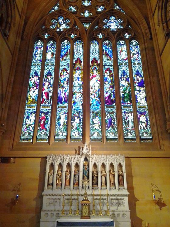The stained-glass windows in the Cathedral were crafted in England at the Hardman studios in Birmingham from 1881 onwards.