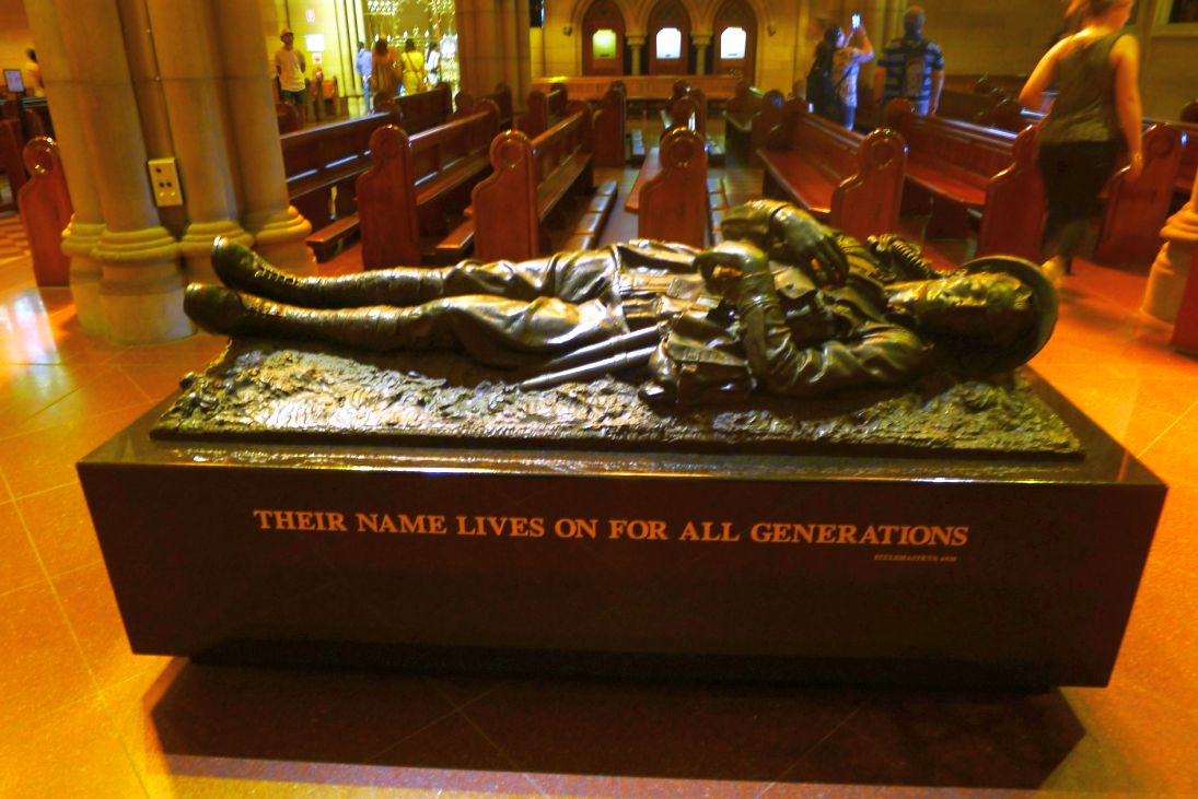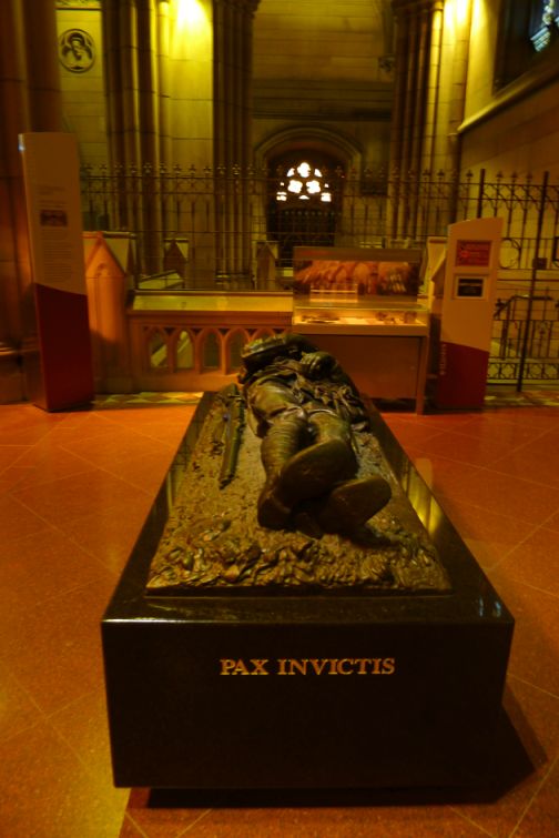 Located previously in the crypt was the Grave of the Unknown Soldier, a realistic depiction of a dead soldier sculpted by George Washington Lambert. Although previously visible to the public from above, the tomb has now been moved into the aisle of the cathedral, to give the public greater access to it.