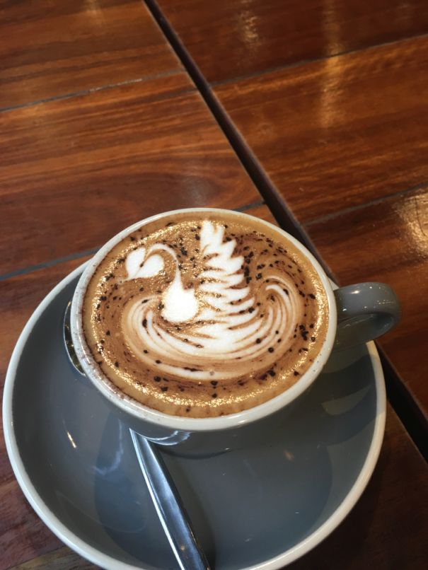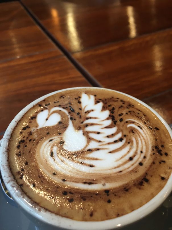 It takes lot of practice to pour the cream on top to make it a nice design.