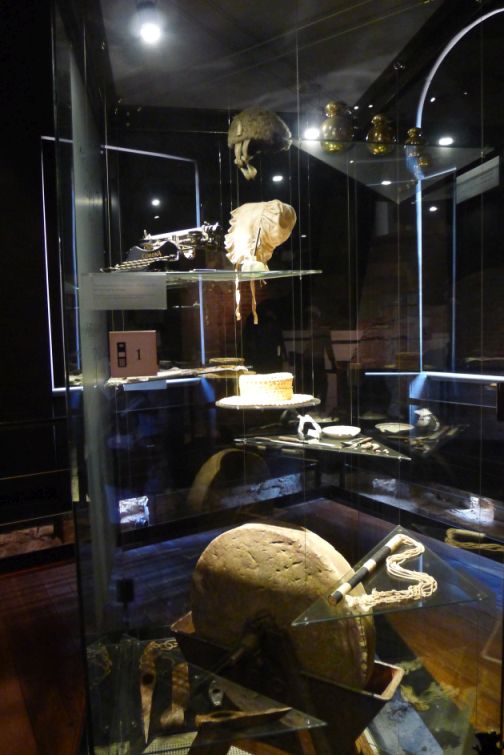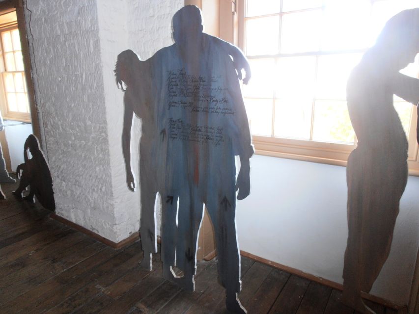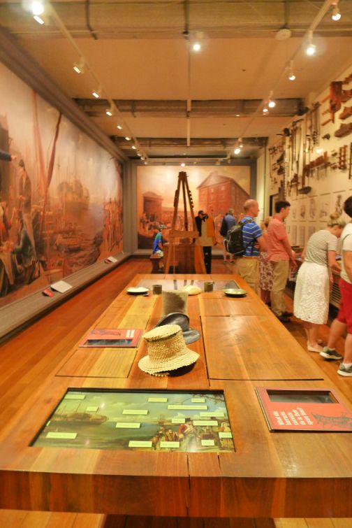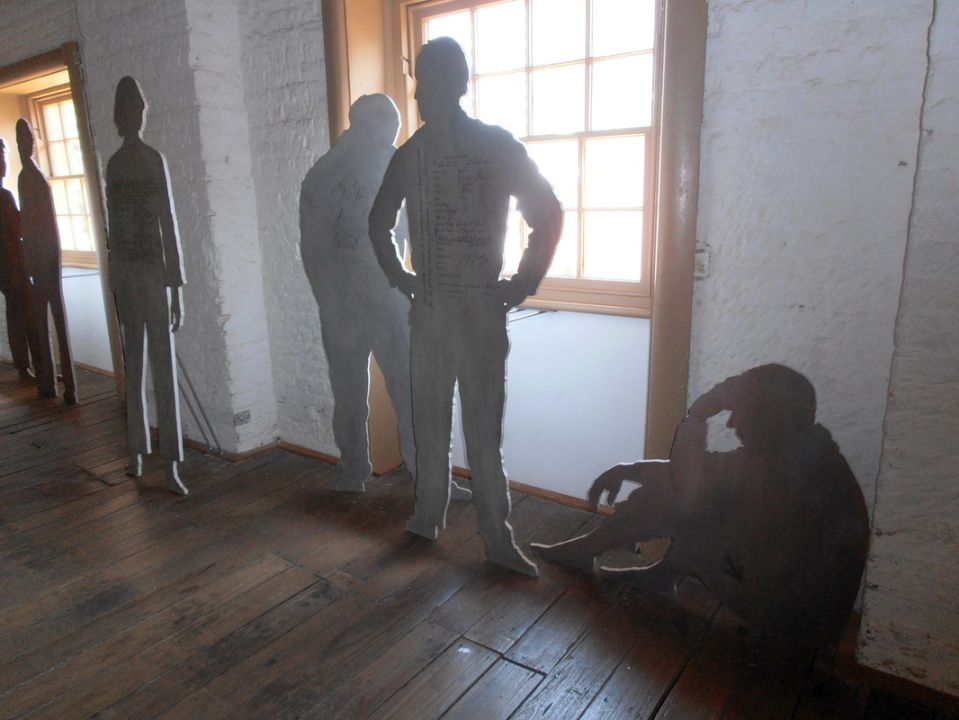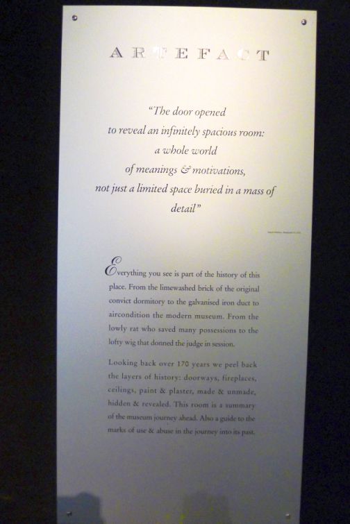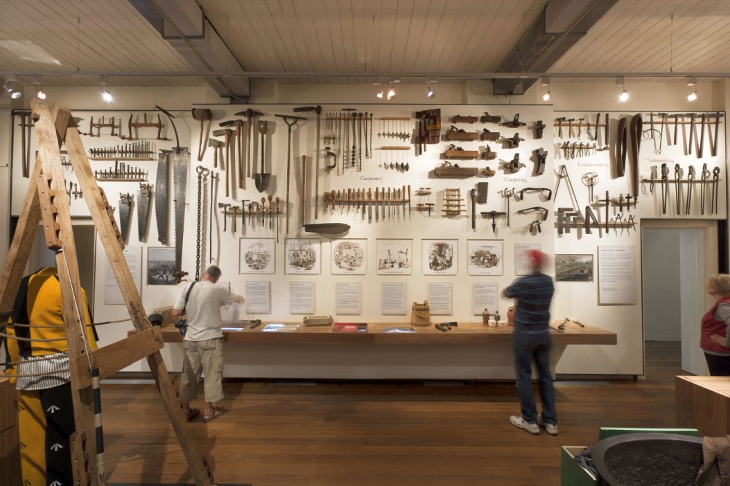 Visual displays of artifacts, such as convict carpentry tools, are mixed with audio installations and interactive experiences.