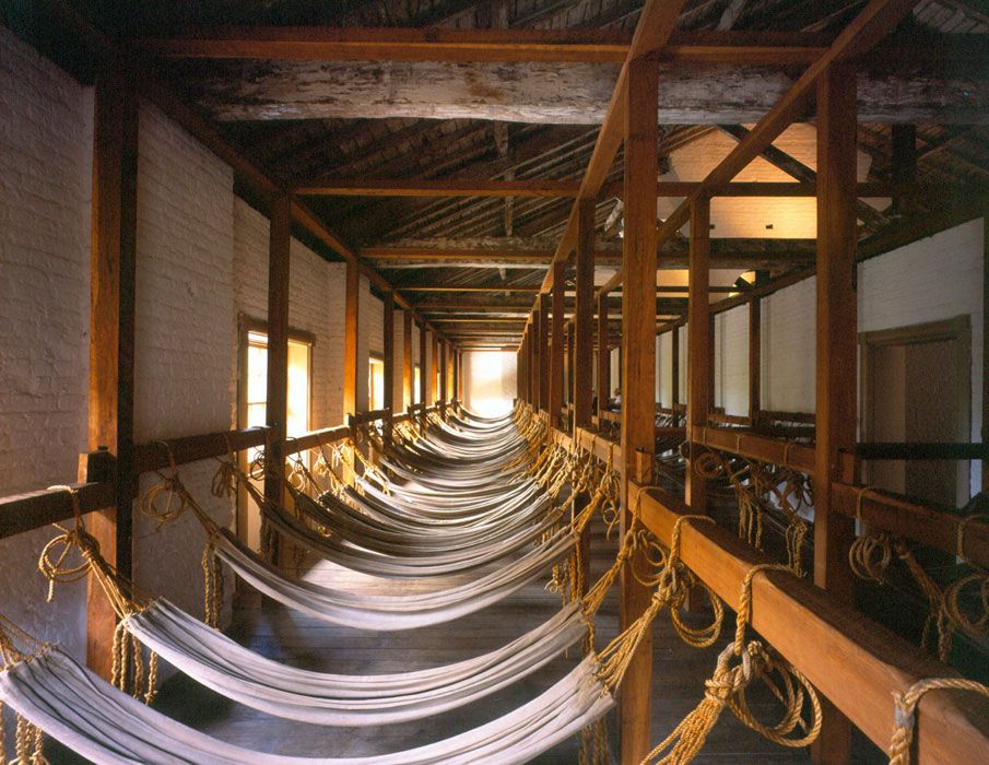 Dormitories filled with hammocks, soundscapes and the chiming clock take you back to the time when the building was crammed full with convicts.