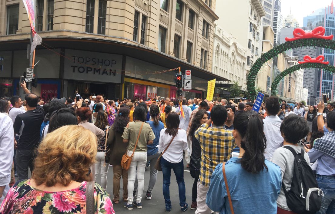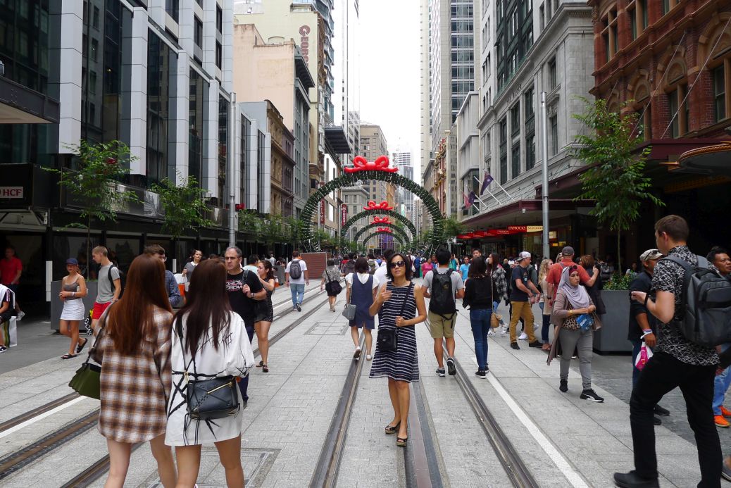 This is George Street located in the central business district. It was Sydney's original high street, and remains one of the busiest streets in the city center, connecting to a number of the City's most important buildings and precincts.