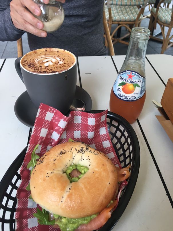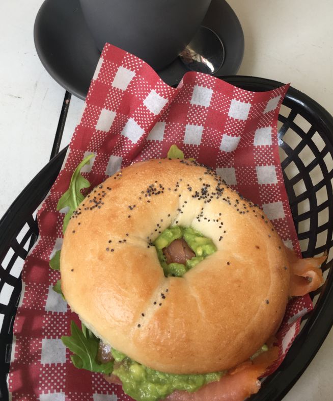 We shared a bagel with cured salmon & avocado. Very nice way to start with a nice cup of coffee and a nice sandwich.
