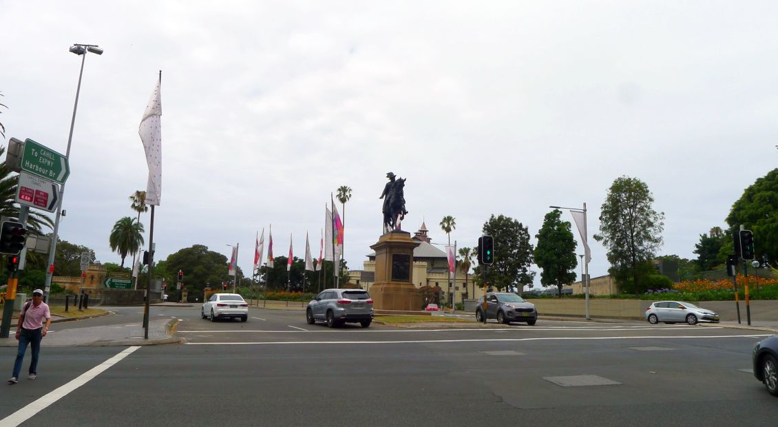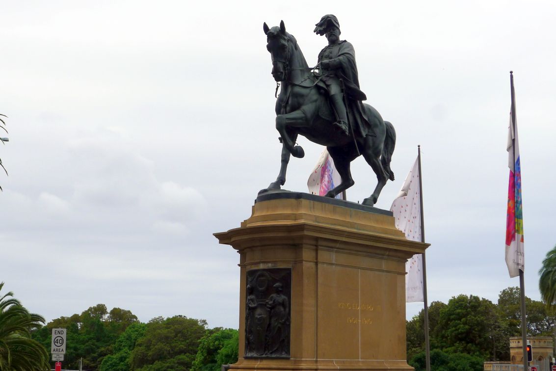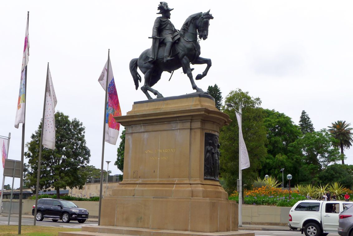 We are now on Macquarie street & conservatorium road, and in the center is a large bronze equestrian statue of King Edward VII.
