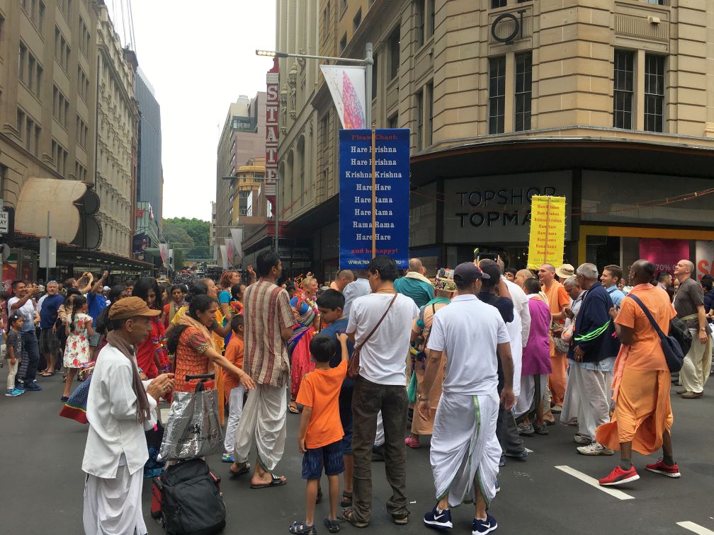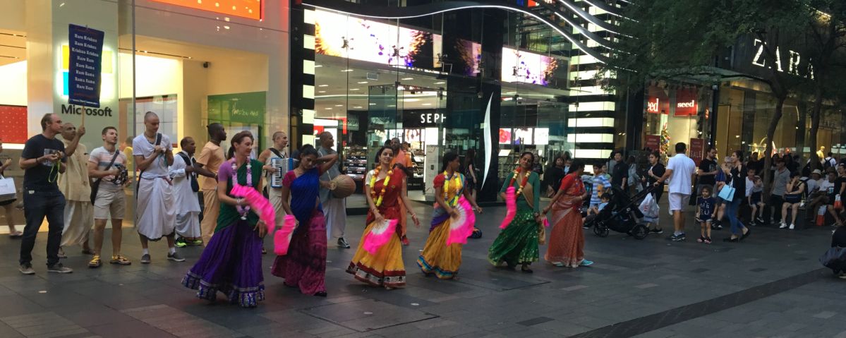 A gathering of Hare Krishna members. I have not see the Hare Krishna members in the streets for a very long time....