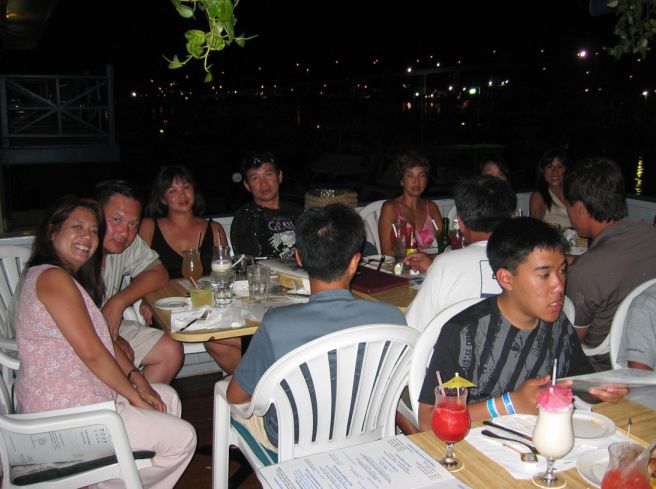 The restaurant is located on the waterfront across from our resort. To get there we had to get two taxis for 22 people. It cost $4 per person and then somebody bargain down to $3 per person but by the time we got there we gave the driver a tip so it end up costing us more than $4/person. It was just fun to bargain though, make you feel like you did not get ripped off!