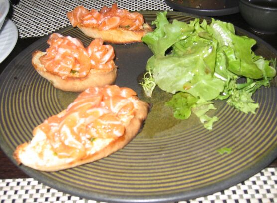 Shaved Salmon on Garlic and Herb toasted bread |