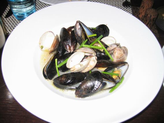 Steamed Mussels and Clams with Lemon Grass, Basil and chili's. We all agreed that the broth was a little too sweet. |