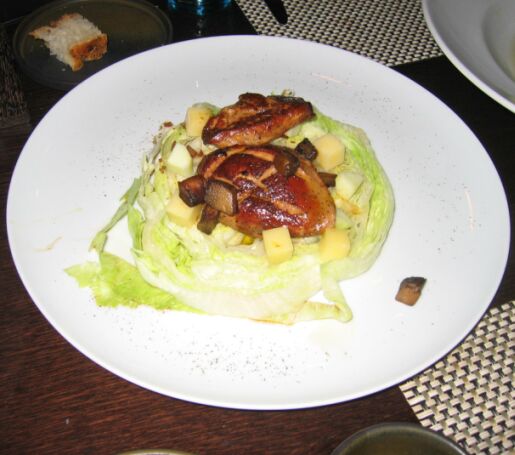 Iceberg and Foie Gras Mignonette, Asian Pear and Asiago. The foie was fresh, cirspy on the outside and very good. |