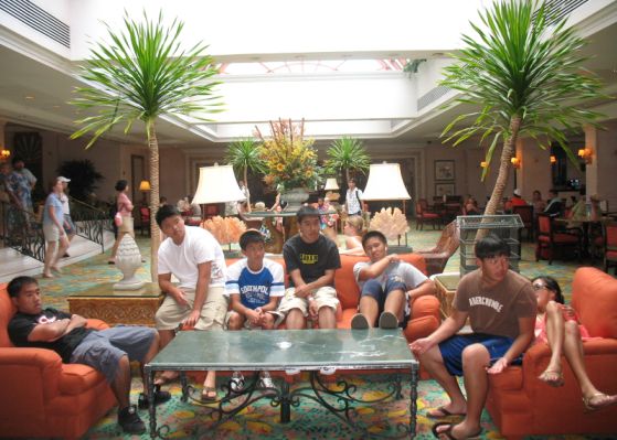 The kids waiting in the lobby to go to Senior Frogs.