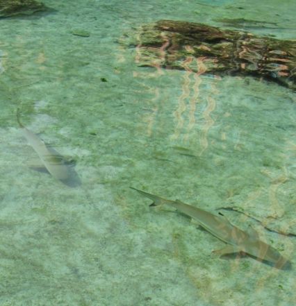 Small sharks in the lagoon. |