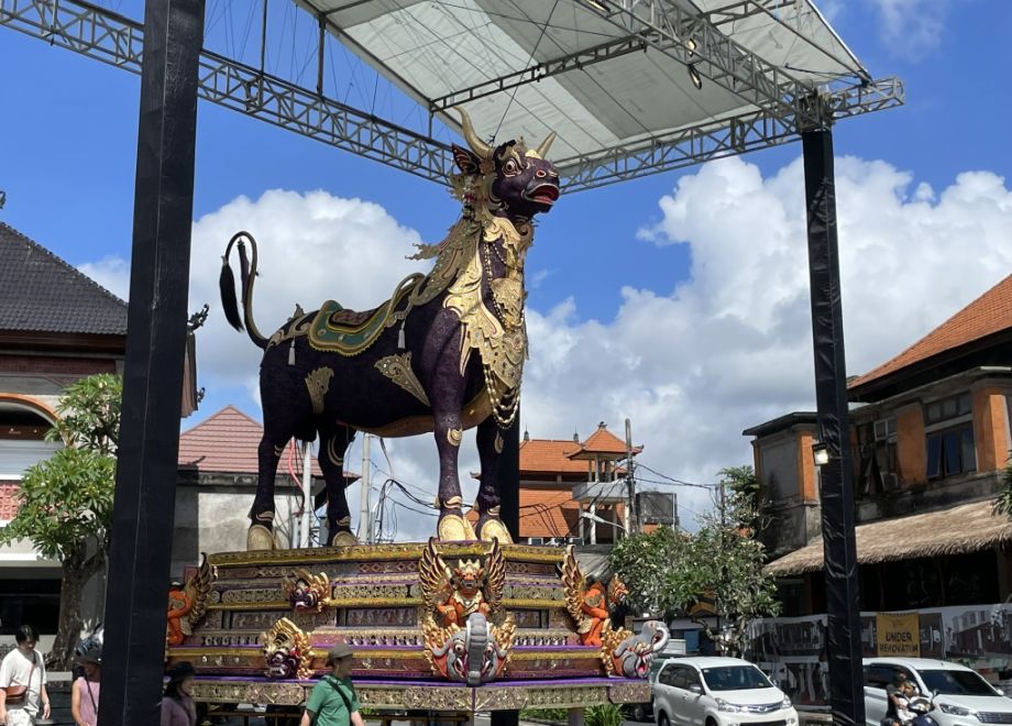 In Bali, statues like this are placed at busy intersections to guard the area spiritually, and serve as a cultural landmark.