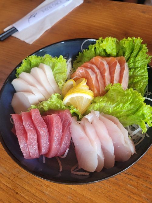 Fresh assorted sashimi, and delicate, lightly seared halibut with ponzu sauce