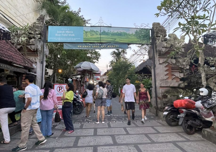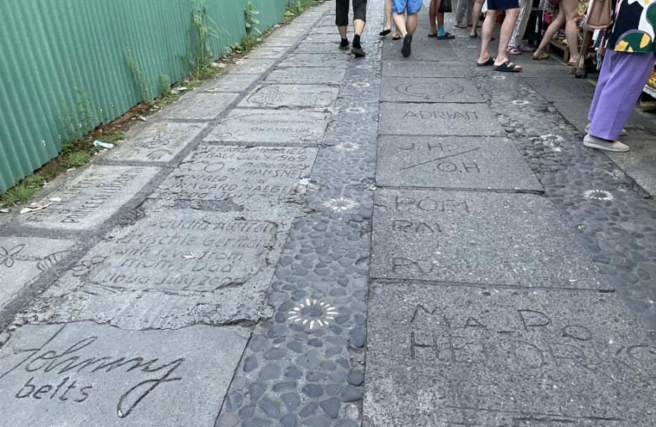 The moment you pass through that small gate-like entrance, the ground becomes covered with individual cement or stone tiles, each one engraved with writing. These tiles were donated by families, visitors, and local businesses. Each donor paid for a tile to help Ubud improve the pathway, and in return, they could engrave their name, a message, date, etc...