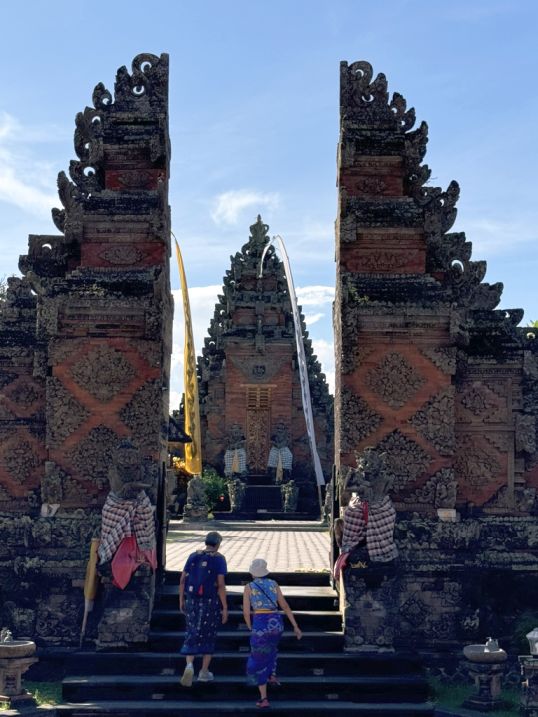 When we arrived at Batuan Temple, the first thing you notice is how deeply traditional and beautifully carved everything is. Visitors are required to wear a sarong, both as a sign of respect and because the temple is an active place of worship for the local community.