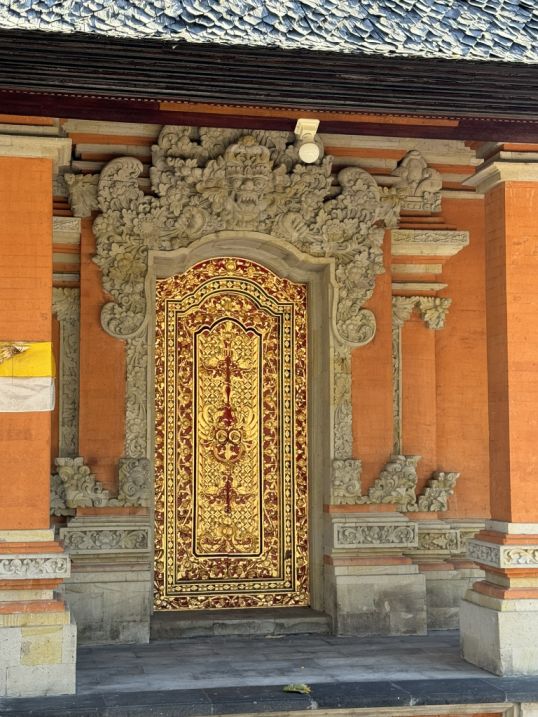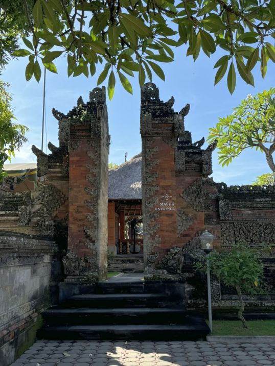 Toward the back of the courtyard, we spotted another gate marked “Masuk Entrance.” This is a Kori Agung gate, a more sacred entrance that leads to the deeper, holier part of the temple. It’s tall, richly decorated, and more dramatic than the outer gates. Passing through it feels like we are crossing into a more spiritual zone of the temple.