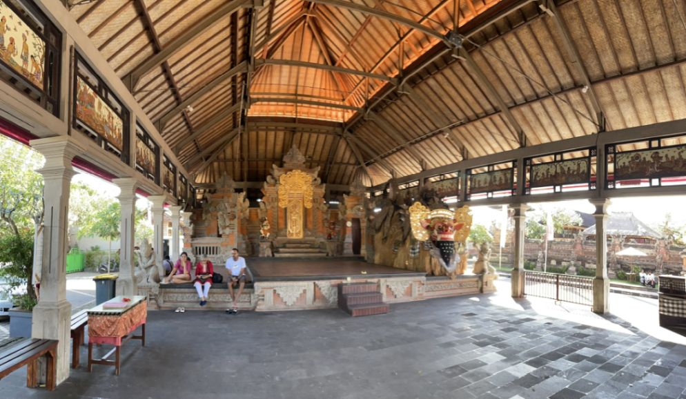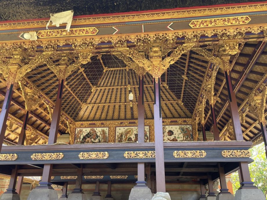 An ornate Bale (open pavilion) used for preparing offerings or hosting the temple priests.